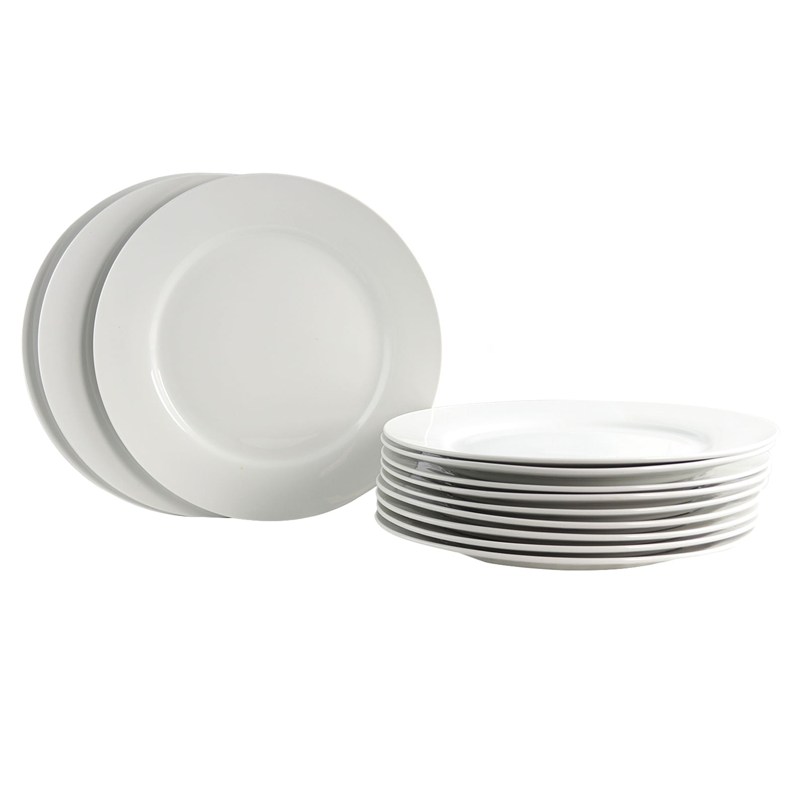 Gibson Home Noble Court 10.5" Dinner Plate Set in White, Set of 12